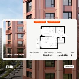 Продаётся 1-комн. квартира площадью 39,8 кв.м на 3 этаже 16 этажного дома (Корпус 82.2, Секция 2) проекта ПИК Саларьево парк. Светлый просторный подъезд на уровне земли, функциональная планировка, большие окна, c отделкой.