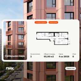 Продаётся 2-комн. квартира площадью 65,8 кв.м на 6 этаже 14 этажного дома (Корпус 82.6, Секция 6) проекта ПИК Саларьево парк. Светлый просторный подъезд на уровне земли, функциональная планировка, большие окна, c отделкой.