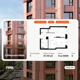 Продаётся 1-комн. квартира площадью 37,1 кв.м на 5 этаже 24 этажного дома (Корпус 82.8, Секция 8) проекта ПИК Саларьево парк. Светлый просторный подъезд на уровне земли, функциональная планировка, большие окна, c отделкой.