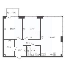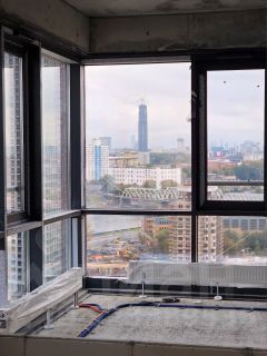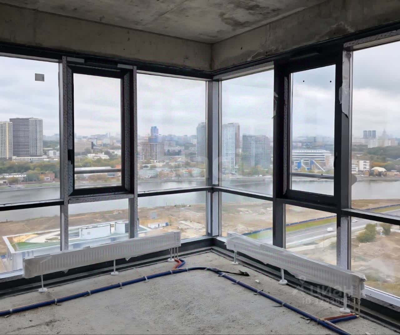 В квартире потолки 3,2 м, свободная планировка, без отделки (от застройщика). Панорамное остекление в пол и огромный угловой витраж в кухне-гостиной открывает великолепный вид на реку, от которого невозможно оторваться.