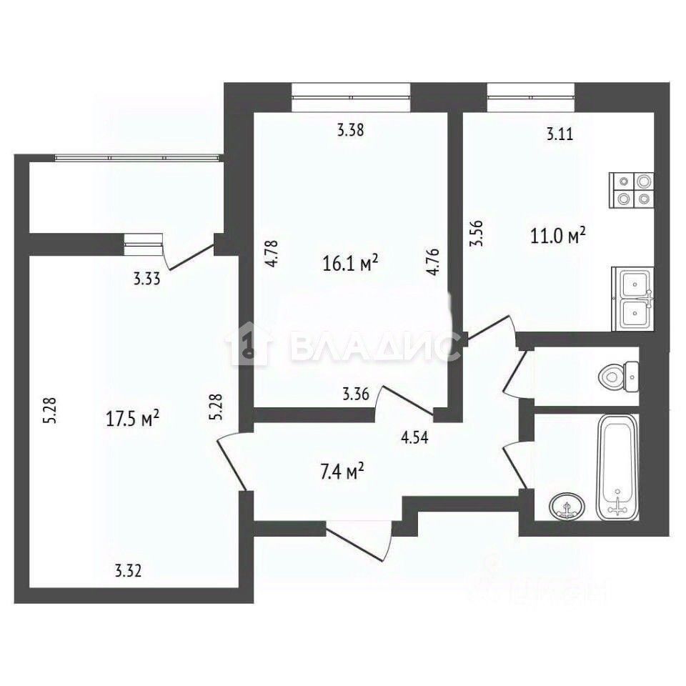 Общая площадь: 56 кв.м. (жилая 36 кв.м., кухня 10 кв.м.).