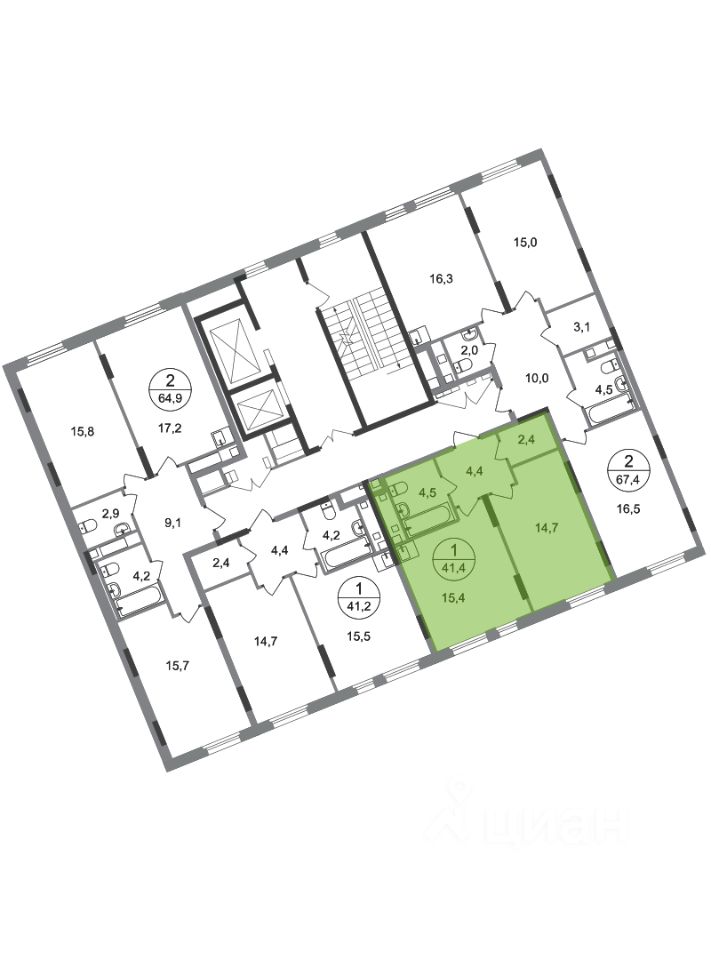 Общая площадь квартиры - 41,4 кв. м, этаж 10 из 17.