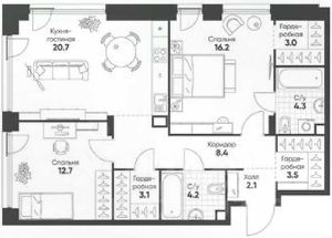 — Евро-трёшка: 2 изолированные спальни + просторная кухня-гостиная 20 м²