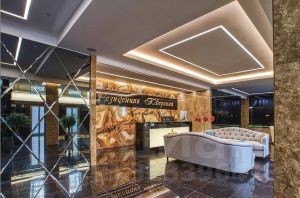 В ЖК просторный холл для встречи гостей, достойный уровень сервиса и безопасности.