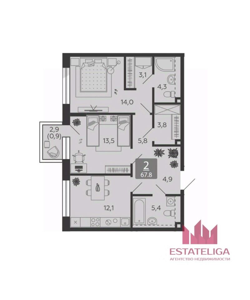 Id 57827. Продается двухкомнатная квартира в новом ЖК "Shagal на реке!