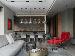 Планировка: просторная гостиная-столовая с кухней-островом и лоджией с видом на парк, главная спальня с ванной и гардеробной, детская с ванной и гардеробной, кабинет (гостевая спальня) с выходом на уютную террасу, гостевой санузел с постирочной.