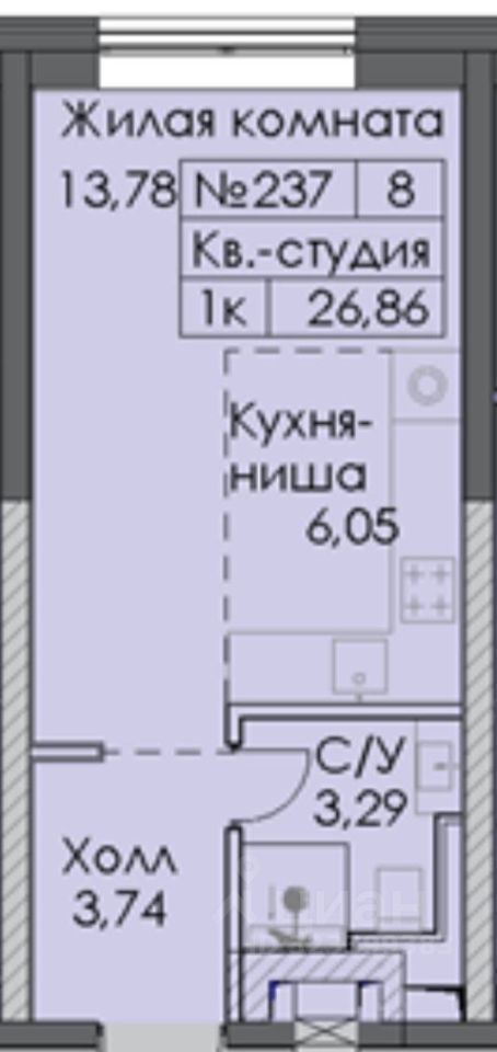В ЖК "Republic", корпусе Reds 2 продается 1 комнатная квартира на 7м этаже, площадью 26,86 кв.м., с отделкой White box, застройщик - "Страна Девелопмент".
