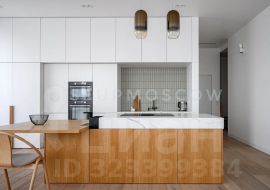 В интерьере использованы только натуральные дорогие материалы, бытовая техника премиум класса, мебель изготовлена по индивидуальному заказу.