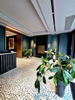• В лобби выделена зона для приема гостей с уютным био-камином