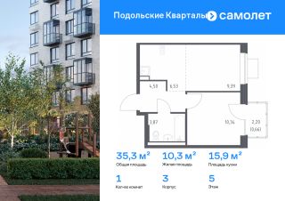 Строим кварталы для жизни с заботой о будущем. Предлагается 1-комнатная квартира комфорт-класса 35,29 кв.м в корпусе 3 на 5 этаже, в ЖК "Подольские Кварталы"