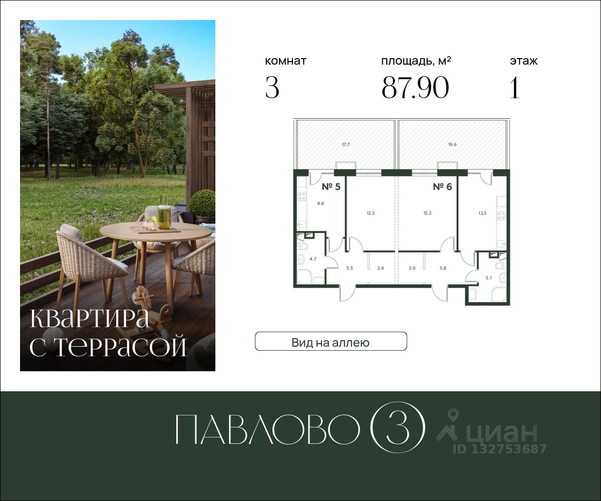 Старт продаж! Продается 3-комнатная квартира в новом клубном жилом комплексе "Павлово 3" площадью - 87.90 кв. м полученная за счёт объединения 2-х квартир, на 1 этаже, в корпусе 3 в малоэтажном монолитном доме от компании-застройщика.