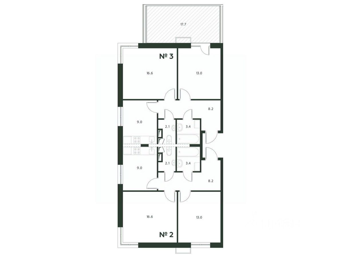 Из окон, а также с террасы, открывается вид на лес. В квартире высокие потолки 3.25 м, что дает ощущение простора. Преимуществом также является большой санузел.