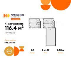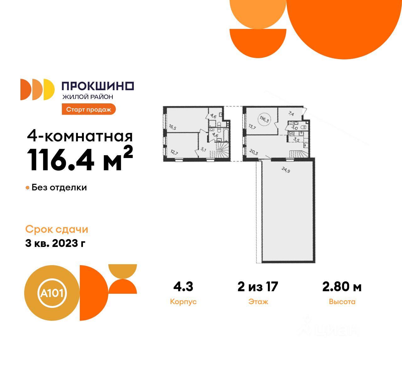 Продается четырехкомнатная квартира 349 в новостройке Жилой квартал "Прокшино" по адресу Москва, ТиНАО, Новомосковский АО, Сосенское С/П, улица Лобановский Лес, 13, район Коммунарка, Новомосковский административный округ, Москва. Общая площадь квартиры - 116.40 кв. м., этаж 2 из 17, секция 3. Тип проекта, по которому построен дом - монолит, компания-застройщик - ООО "А101". Стоимость квартиры - 31955292 Р.