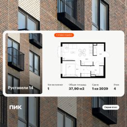 Продаётся 1-комн. квартира площадью 37,9 кв.м на 4 этаже 21 этажного дома (Корпус 3.5, Секция 1) проекта ПИК Руставели 14. Светлый просторный подъезд на уровне земли, функциональная планировка, большие окна, c отделкой.