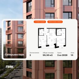 Продаётся 2-комн. квартира площадью 59,3 кв.м на 14 этаже 22 этажного дома (Корпус 73, Секция 1) проекта ПИК Саларьево парк. Светлый просторный подъезд на уровне земли, функциональная планировка, большие окна, c отделкой.