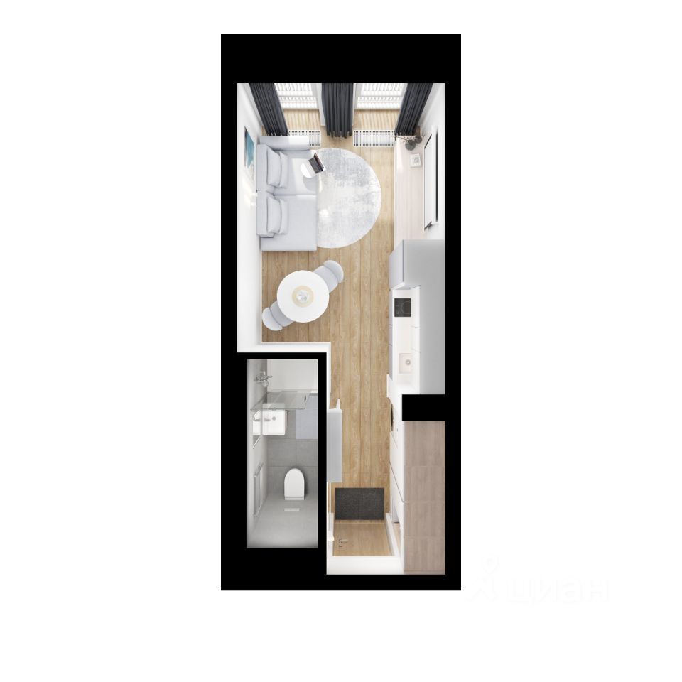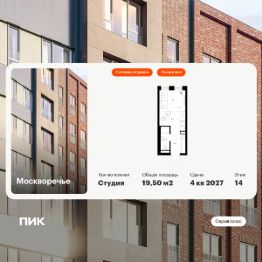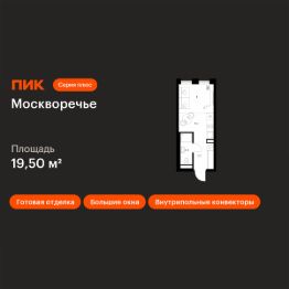 Продаётся квартира-студия площадью 19,5 кв.м на 14 этаже 17 этажного дома (Корпус 1.2, Секция 3) проекта ПИК Москворечье. Светлый просторный подъезд на уровне земли, функциональная планировка, большие окна, c отделкой.