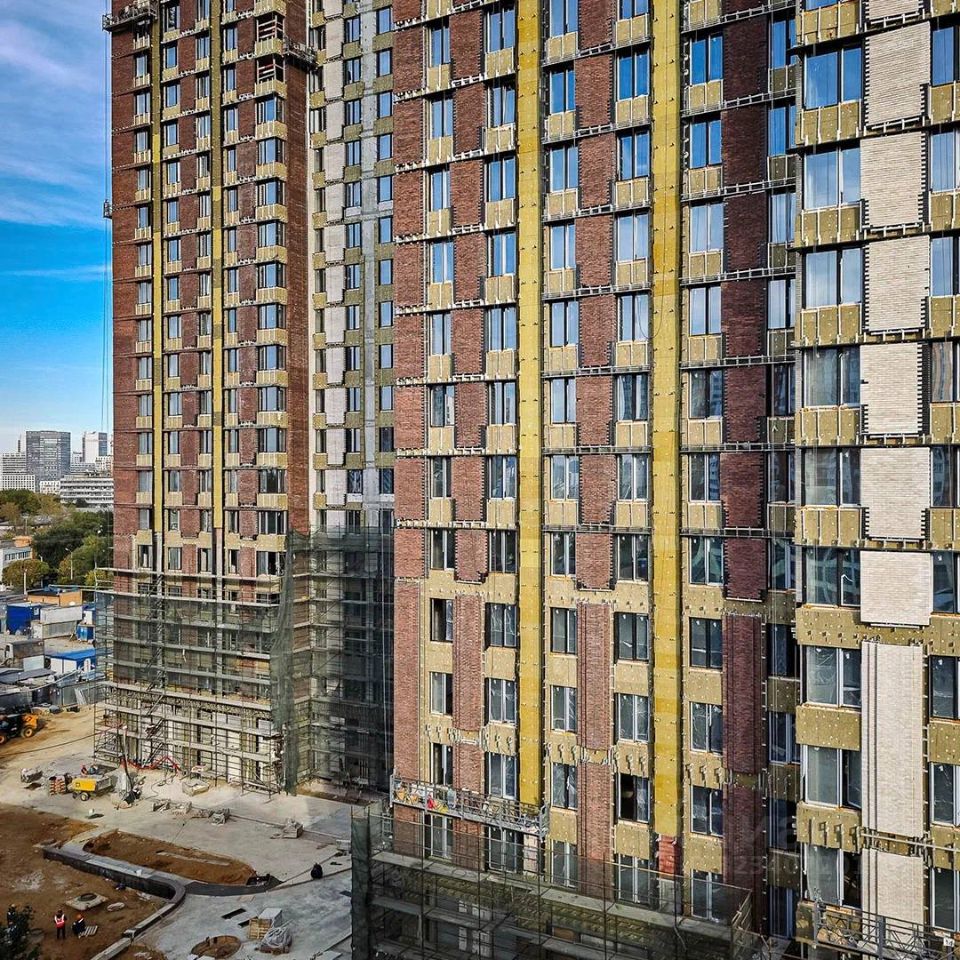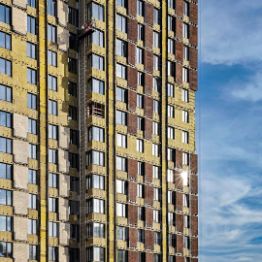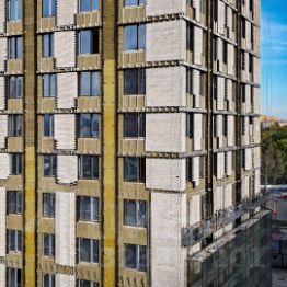Сейчас на стройплощадке активно ведутся фасадные работы, установка стеклопакетов и оконных конструкций. В местах общего пользования и в лифтовых холлах ведется кладка настенной и напольной плитки, а также идет монтаж инженерных систем. Во дворе комплекса благоустраивают территорию.