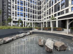 Перед кварталом находится природный лесопарк, в пешей доступности — речное побережье.