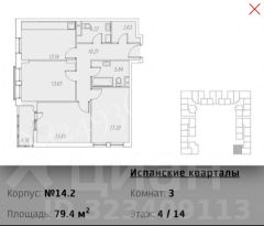 Общая пл. 79,4 кв. м, на 4 этаже 14-этажного монолитного дома, сдан в 2019 году.