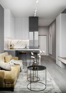 Все студии в новостройке оснащены современным оборудованием, включая счетчики с возможностью автоматического сбора данных. Во всех подъездах спроектированы уютные лобби-зоны и индивидуальные кладовые.