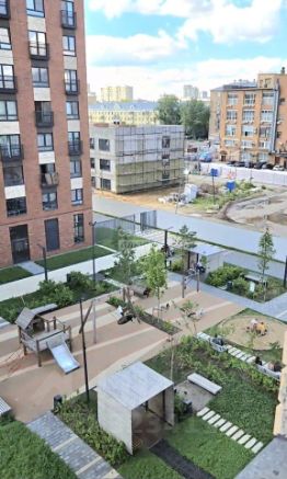Современный дом: Красивый подъезд, современные лифты, благоустроенная придомовая территория.
