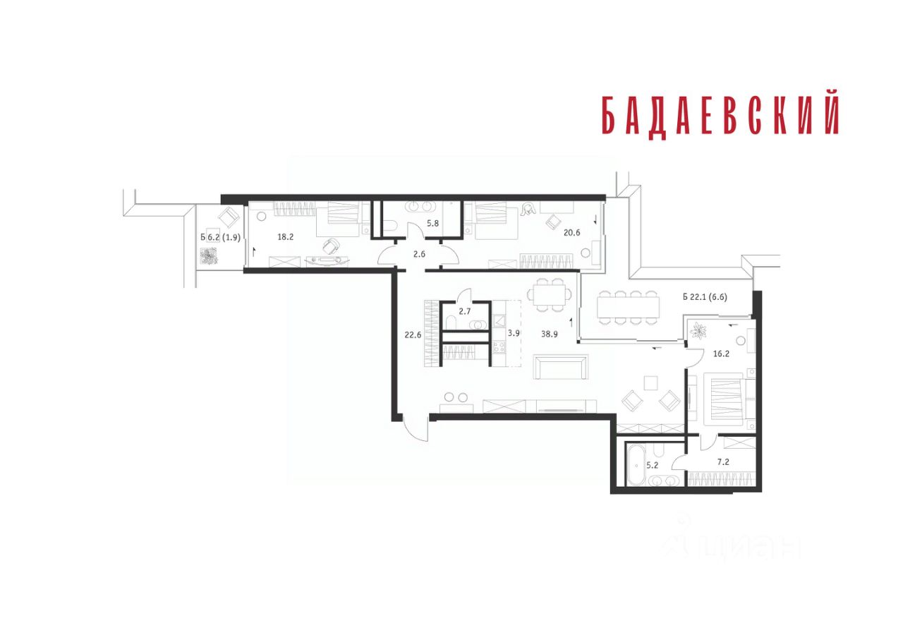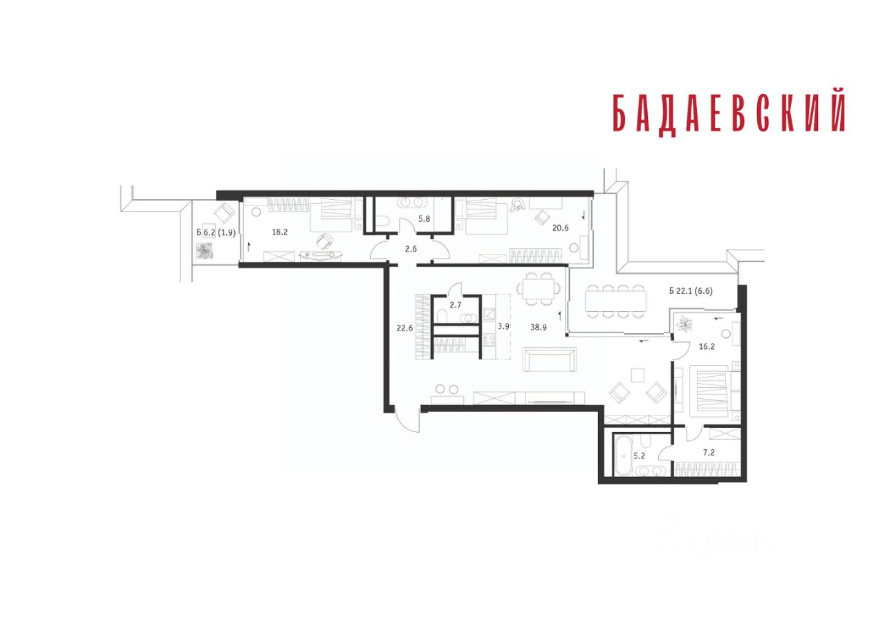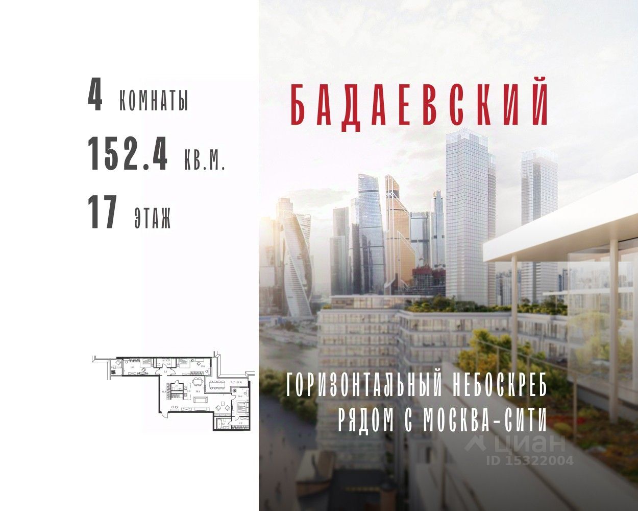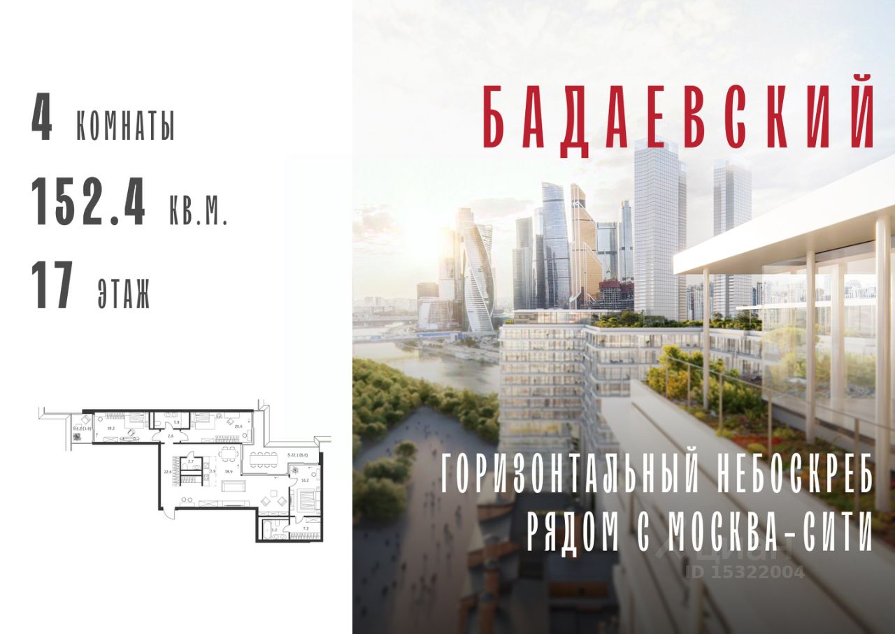 Продаётся 4-комнатная квартира общей площадью 152.40 м² на 17 этаже Жилого Комплекса Бадаевский.