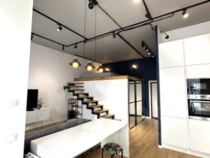 •Квартира-студия общей площадью 48,19м2, с антресольным этажом (спальное место) площадь составляет 56,22м2.