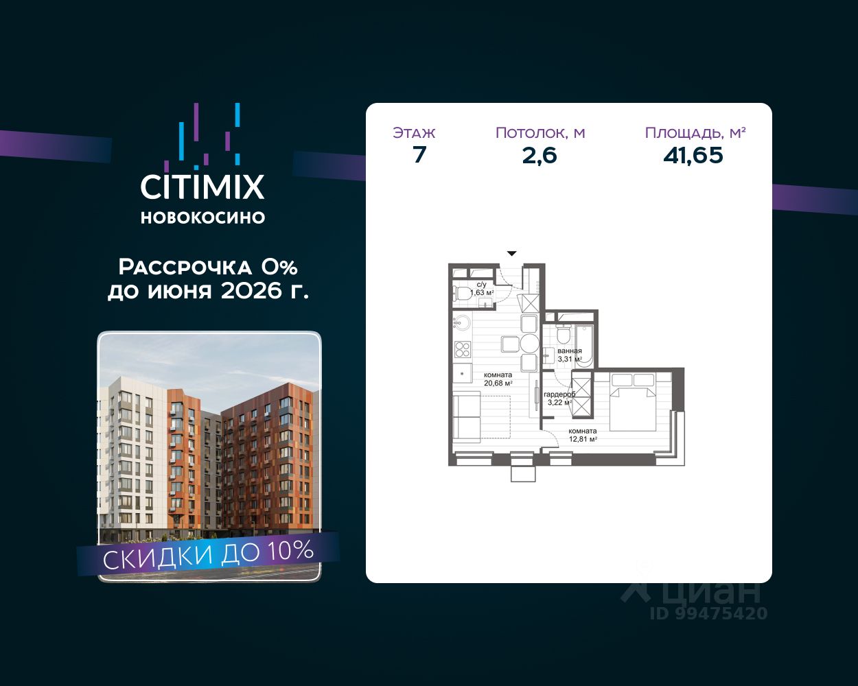 МФК "CITIMIX Новокосино" находится в 15 минутах пешком от м. Новокосино, время поездки до центра Москвы займёт всего 30 минут.