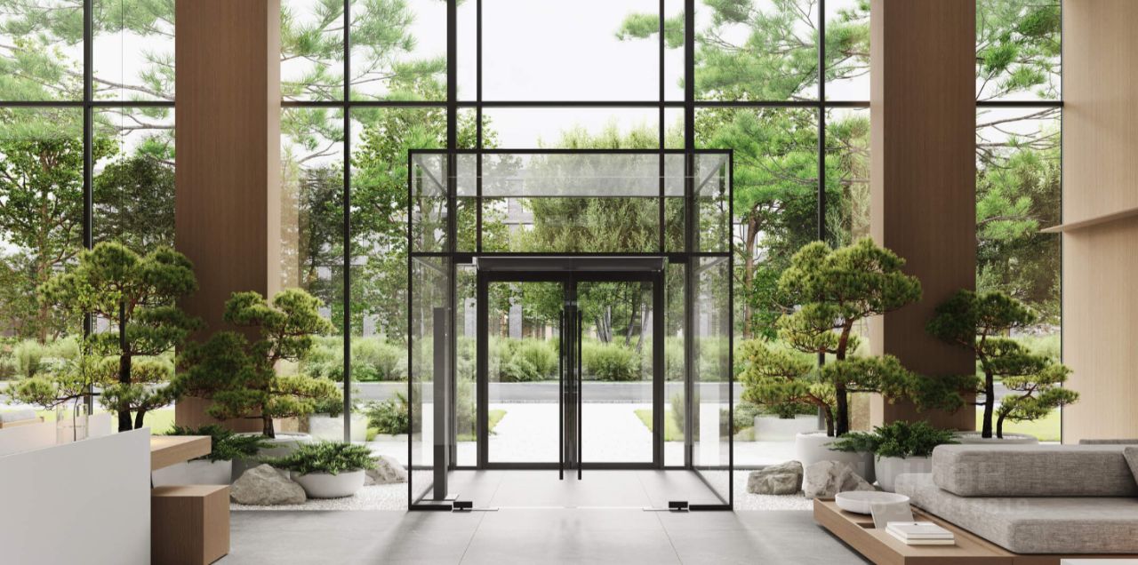 • двор с фонтаном, зеленые и сенсорные сады, лаунж-зоны
