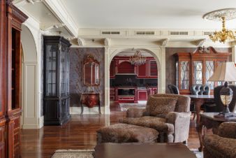 Многокомнатная квартира в роскошном и дорогостоящем исполнении, с эксклюзивным ремонтом с применением натуральных материалов (мрамор, оникс, дерево). Квартира укомплектована "под ключ" премиальной техникой и мебелью.