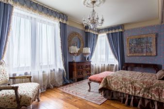 Планировка: 6 спален; кабинет; большая и малая гостиные; 4 санузла; гардеробная; постирочная и две кухни. Множество вместительных и удобных мест хранения вещей.