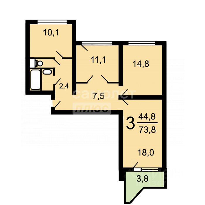 Просторная кухня площадью 10,1 м2 мечта любой хозяйки. Здесь достаточно места для приготовления пищи и проведения семейных обедов. Раздельный санузел это практичное решение для большой семьи, которое обеспечивает дополнительный комфорт и удобство в повседневной жизни.