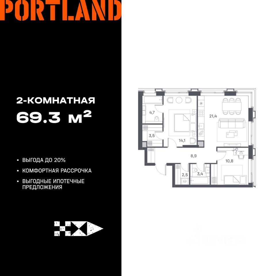 Продаётся 2-к. квартира, 18 этаж в жилом комплексе бизнес-класса Portland от девелопера FORMA. ЖК расположен на берегу Москвы-реки в северной части района Печатники в акватории Южного речного порта.