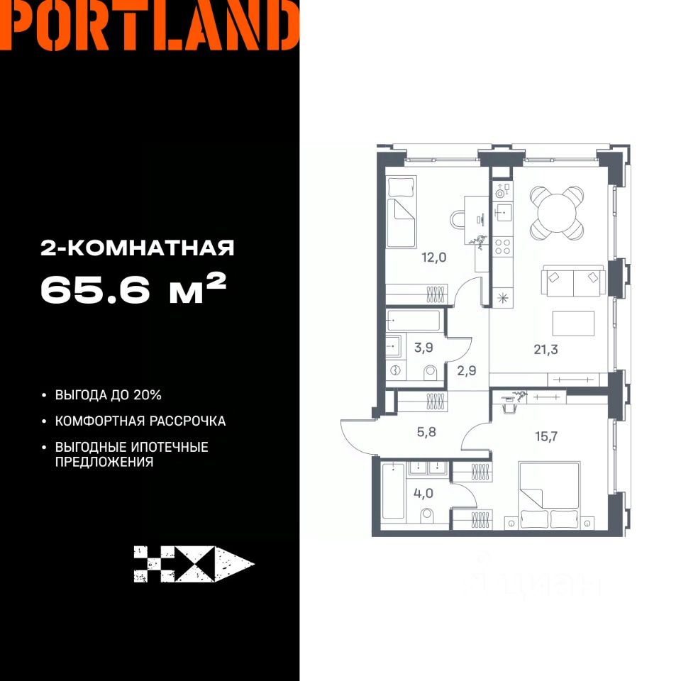 Продаётся 2-к. квартира, 13 этаж в жилом комплексе бизнес-класса Portland от девелопера FORMA. ЖК расположен на берегу Москвы-реки в северной части района Печатники в акватории Южного речного порта.