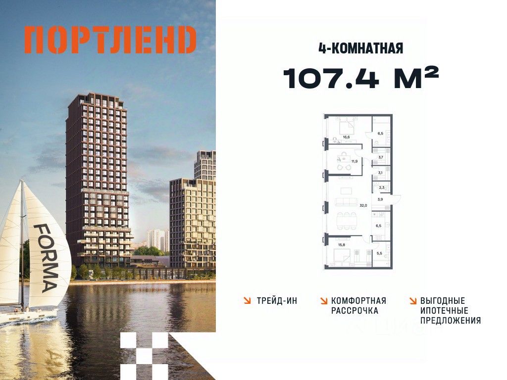 Продаётся 4-к. квартира, 15 этаж в жилом комплексе бизнес-класса ПОРТЛЕНД от девелопера FORMA. ЖК расположен на берегу Москвы-реки в северной части района Печатники в акватории Южного речного порта.