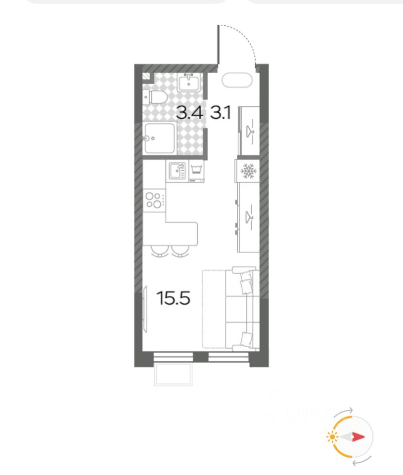 Несмотря на небольшую общую площадь, жилая зона составляет 15.5 квадратных метров, предоставляя достаточно места для создания индивидуального пространства вашей мечты. Квартира сдается без ремонта, который вы сможете выполнить согласно своим предпочтениям и вкусам, превратив её в идеальное место для жизни.