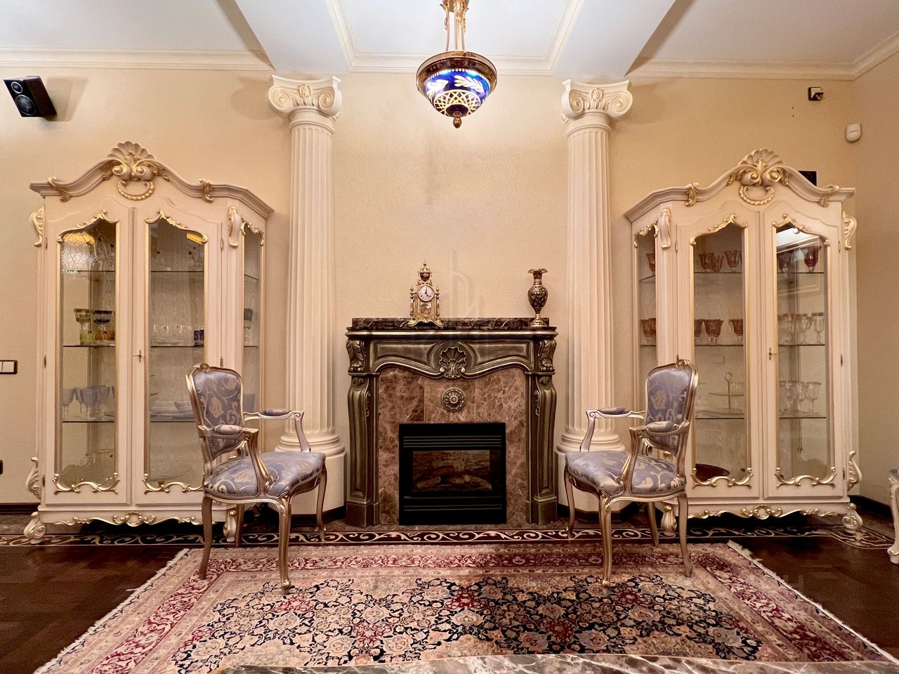 Идеальная планировка: Кухня-столовая 14 кв.м.; Гостиная 53 кв.м., визуально разделенная на 3 зоны (Столовая / Каминная / Зона домашнего кинотеатра); Хозяйская спальня 19 кв.м., со своей гардеробной 11 кв.м., санузлом с ванной 9 кв.м., и кабинетом, размещенным на утепленной лоджии 5 кв.м.; Детская спальня 25 кв.м.; Гостевой совмещенный с/у с душем 4 кв.м.; Постирочная 3.6 кв.м. со стиральной машиной и встроенным центральным пылесосом; Холл 12 кв.м.; Гардеробная 5 кв.м. Высота потолка 3 м.