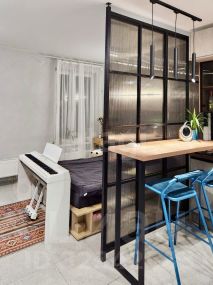 Кухонная зона: Оснащена техникой Weissgauf (посудомоечная машина, варочная панель, духовой шкаф, холодильник). Кухонный фартук и столешница из мрамора, дополнена барной стойкой.