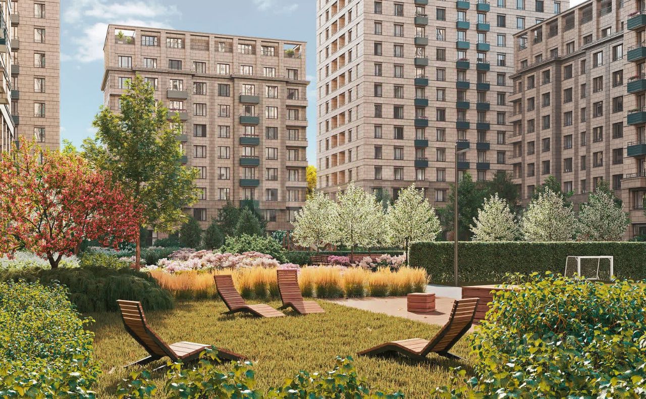 Закрытая территория, двор без машин, во дворе будут высажены деревья по календарю цветения, доступ во двор будет по ключ карте.