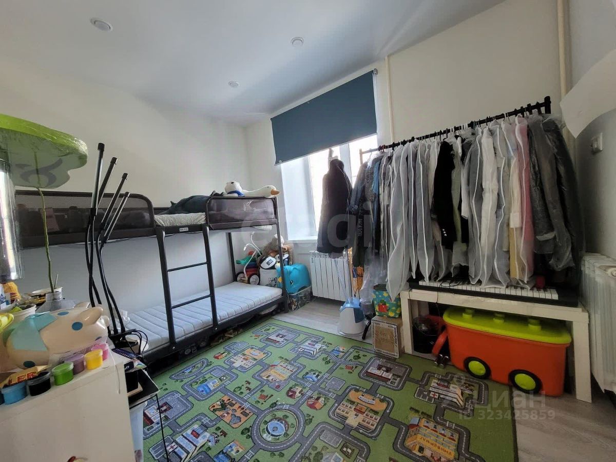 Окна выходят в тихий, зеленый двор. Комнаты смежные — идеальный вариант для семьи с одним ребенком.