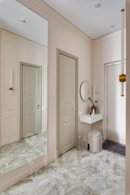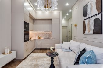 В квартире выполнен полноценный капитальный качественный ремонт, который не оставит равнодушным даже самых требовательных покупателей. Всё абсолютно новое, никто не жил!! Планировка продумана до мелочей: две спальни, где одна полностью укомплектована мебелью, а вторая свободного назначения; большая и светлая гостиная с кухонной зоной также укомплектованы всей необходимой мебелью и техникой; просторный санузел и огромная гардеробная сделаны с учетом всех ваших потребностей.