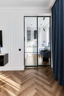 Высокие потолки 3 метра и большие окна наполняют квартиру светом и воздухом.