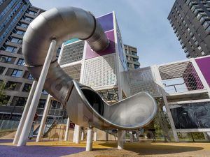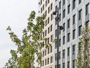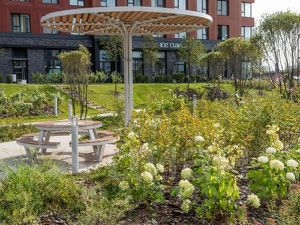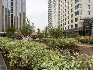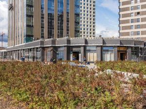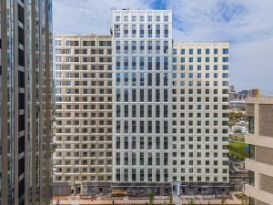 Подземный паркинг рассчитан на 1268 места. Зарядные устройства для электромобилей, также системы автоматического контроля температуры воздуха и бесконтактного доступа.