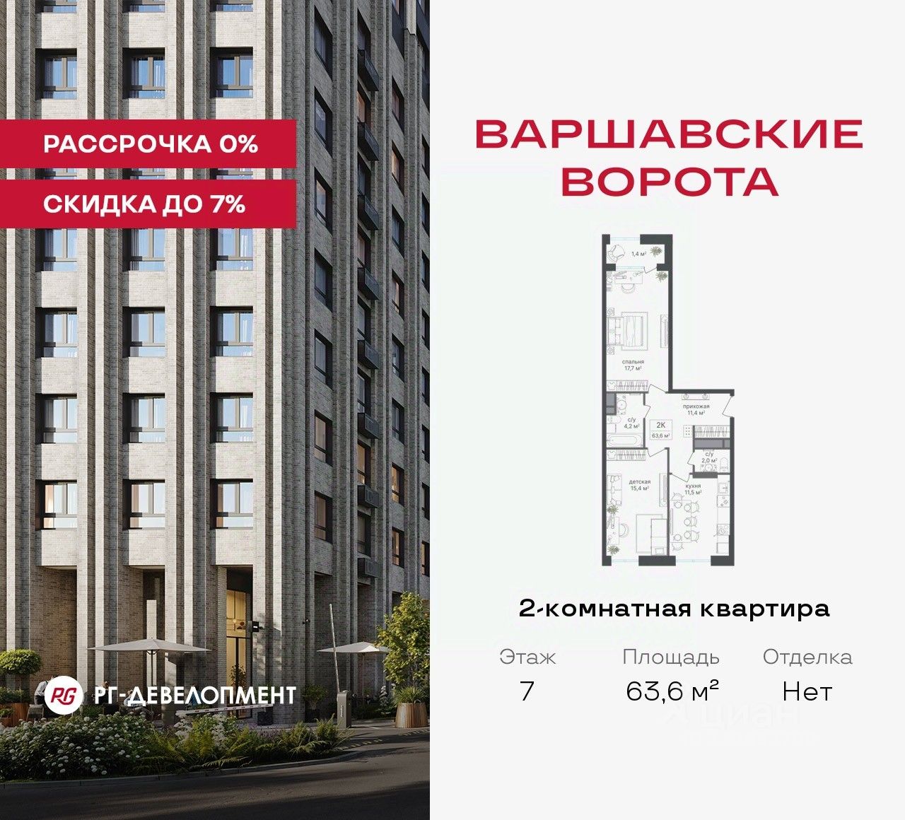 Продаётся 2-комнатная квартира 63,6 кв.м. в МФК "Варшавские ворота" на 7-м этаже 30 этажного дома. МФК "Варшавские ворота" — это точка баланса между природой и городом, стилем и функциональностью, жизнью сегодня и устойчивым будущим.