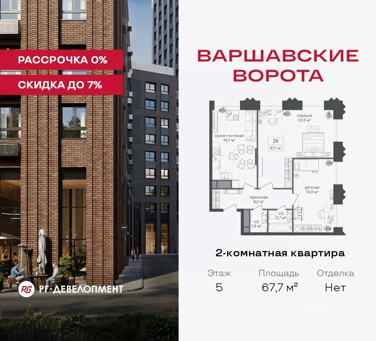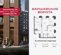 Продаётся 2-комнатная квартира 67,7 кв.м. в МФК "Варшавские ворота" на 5-м этаже 30 этажного дома. МФК "Варшавские ворота" — это точка баланса между природой и городом, стилем и функциональностью, жизнью сегодня и устойчивым будущим.
