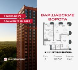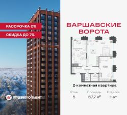 Продаётся 2-комнатная квартира 67.7 кв.м. в МФК "Варшавские ворота" на 5-м этаже 30 этажного дома. МФК "Варшавские ворота" — это точка баланса между природой и городом, стилем и функциональностью, жизнью сегодня и устойчивым будущим.
