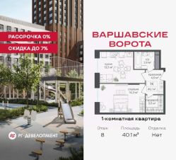 Продаётся 1-комнатная квартира 40.1 кв.м. в МФК "Варшавские ворота" на 8-м этаже 8 этажного дома. МФК "Варшавские ворота" — это точка баланса между природой и городом, стилем и функциональностью, жизнью сегодня и устойчивым будущим.