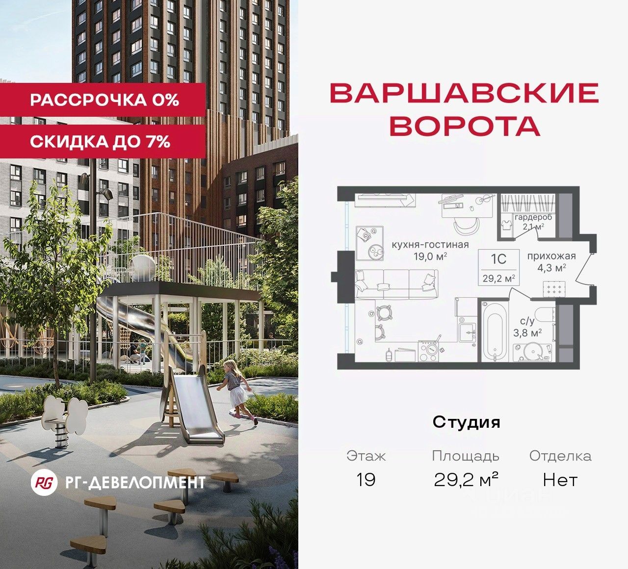 Продаётся Студия 29,2 кв.м. в МФК "Варшавские ворота" на 19-м этаже 30 этажного дома. МФК "Варшавские ворота" — это точка баланса между природой и городом, стилем и функциональностью, жизнью сегодня и устойчивым будущим.