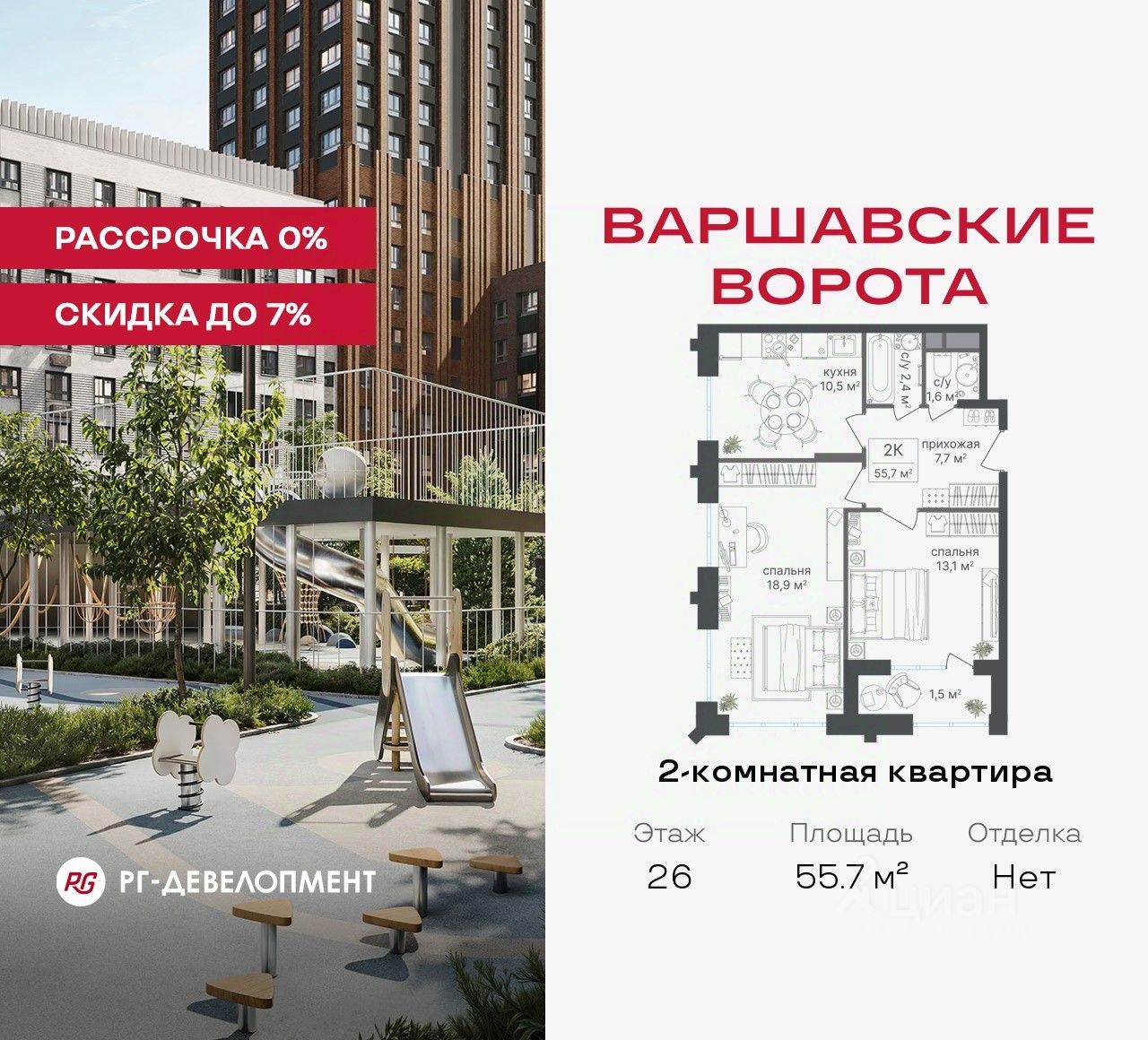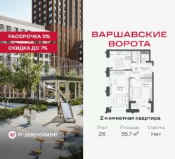 Продаётся 2-комнатная квартира 55.7 кв.м. в МФК "Варшавские ворота" на 26-м этаже 30 этажного дома. МФК "Варшавские ворота" — это точка баланса между природой и городом, стилем и функциональностью, жизнью сегодня и устойчивым будущим.