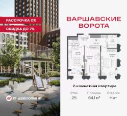 Продаётся 2-комнатная квартира 64,1 кв.м. в МФК "Варшавские ворота" на 25-м этаже 30 этажного дома. МФК "Варшавские ворота" — это точка баланса между природой и городом, стилем и функциональностью, жизнью сегодня и устойчивым будущим.